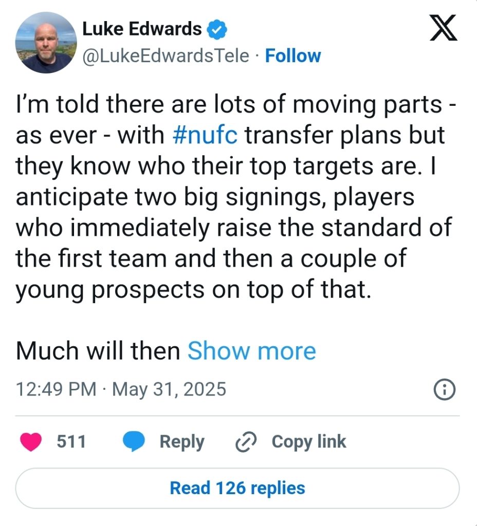After a year of financial restraint dictated by Premier League Profit and Sustainability Rules, the Magpies are finally positioned to flex their muscles in the market, with respected Telegraph journalist Luke Edwards revealing the club plans to make at least two marquee signings capable of immediately elevating Eddie Howe’s starting eleven.