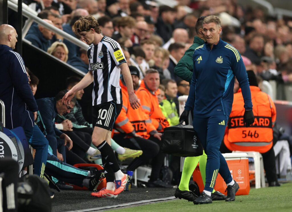 The young winger, who has been one of the standout performers in Europe this season, appeared to suffer a recurrence of a hip injury that has troubled him in recent weeks, leaving Eddie Howe with fresh concerns as his side continue to juggle a demanding fixture schedule.