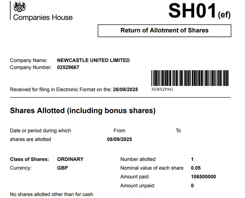 This technical-sounding process is the standard method for putting new capital into the company. It’s a legal mechanism that converts cash into equity, effectively strengthening the club’s financial base. This single share represents the massive £106.5 million investment.