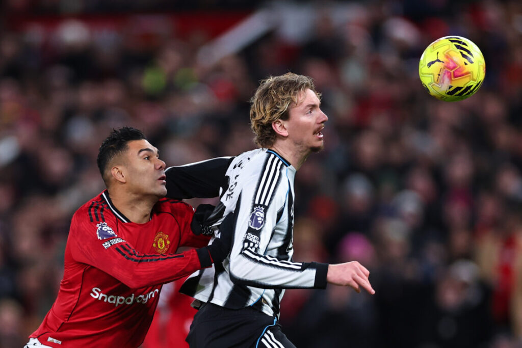 MANCHESTER, ENGLAND – DECEMBER 26: Casemiro of Manchester United and Nick Woltemade of Newcastle United during the Premier League match between Manchester United and Newcastle United at Old Trafford on December 26, 2025 in Manchester, England. (Photo by Robbie Jay Barratt – AMA/Getty Images)