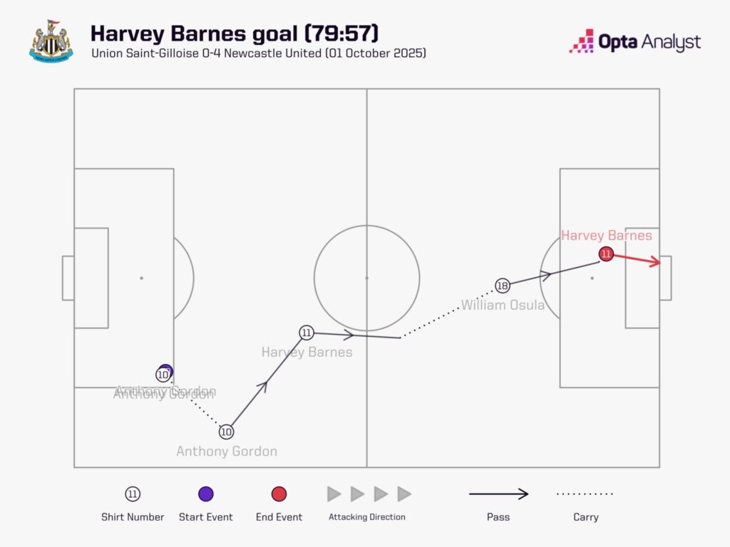 This was a significant moment for Gordon, making him just the third Newcastle player to score in consecutive Champions League matches, a list that includes the legendary Alan Shearer.